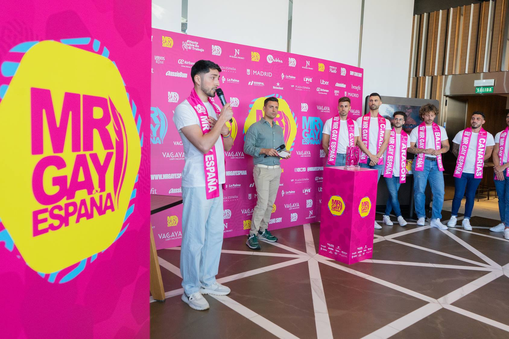 El pasado miércoles 3 de julio, el Hotel VP Plaza España Design se vistió de gala para acoger la rueda de prensa oficial de Mr. Gay España 2024. Este evento, que marcó una primera toma de contacto entre los finalistas, la prensa y los patrocinadores, sirvió para conocer más de cerca a los candidatos y oficializar la entrega de sus bandas.